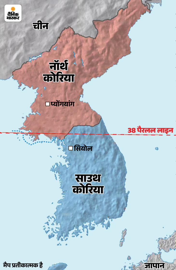 जवाबः कोरिया एक पेनिन्सुला है यानी 3 तरफ समुद्र से घिरा और एक तरफ मेनलैंड से जुड़ा टापू। यहां 1904 तक कोरियाई साम्राज्य का शासन था। इस पर कब्जे के लिए 1904-05 में जापान और चीन के बीच भीषण युद्ध हुआ। जापान ने जीत दर्ज की और कोरिया पर कब्जा जमा लिया। 1945 में सेकेंड वर्ल्ड वॉर में हार के बाद जापान को कोरिया छोड़ना पड़ा।