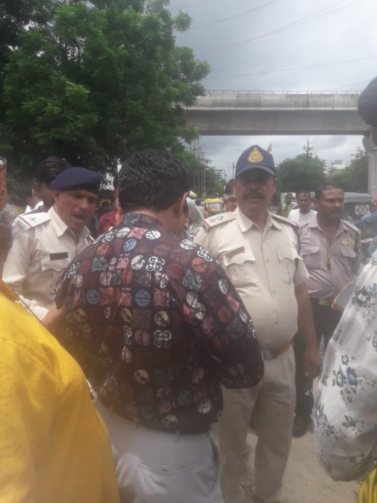 Bhopal 23/Aug/2024 साकेत नगर स्थित एम्स अस्पताल के गेट नंबर 3 के सामने प्राइवेट एंबुलेंस के द्वारा गेट के सामने एंबुलेंस को खड़ी करके सरकारी एंबुलेंस के मार्ग में बाधित किए जाने पर यातायात पुलिस द्वारा कार्रवाई कर एम्बुलेंस को वहां से हटाया गया तथा लाल बसें जो रुकती थी उनके ड्राइवर कंडक्टर को हिदायत दी गई कि वह यहां पर खड़ी ना करें यातायात के उप निरीक्षक पदम भदोरिया की टीम द्वारा कार्रवाई की गई एंबुलेंस हट जाने के कारण भोजन वितरण दीनदयाल थाली जरूरतमंदों के बीच में बांटी गई अभी इस गेट के सामने अतिक्रमण नहीं हटाए गए हैं जिसके कारण पूरे गेट के सामने गंदगी फैली है