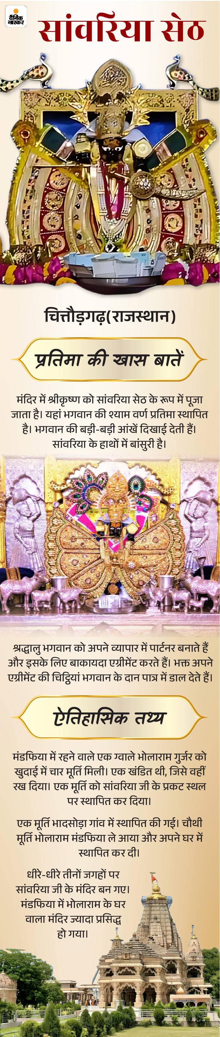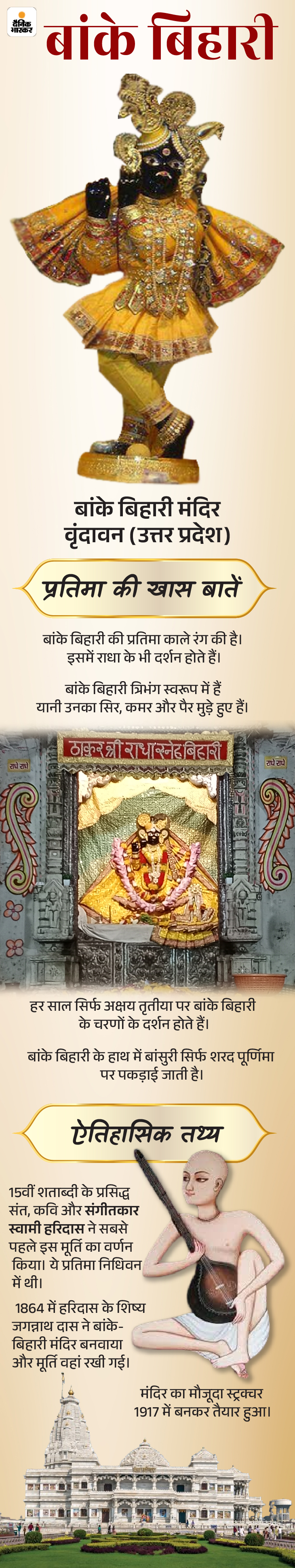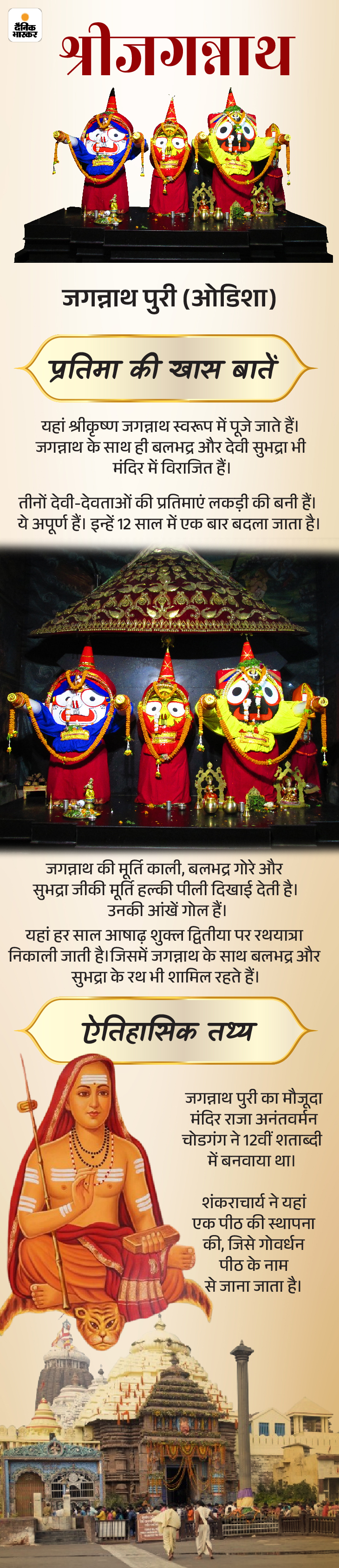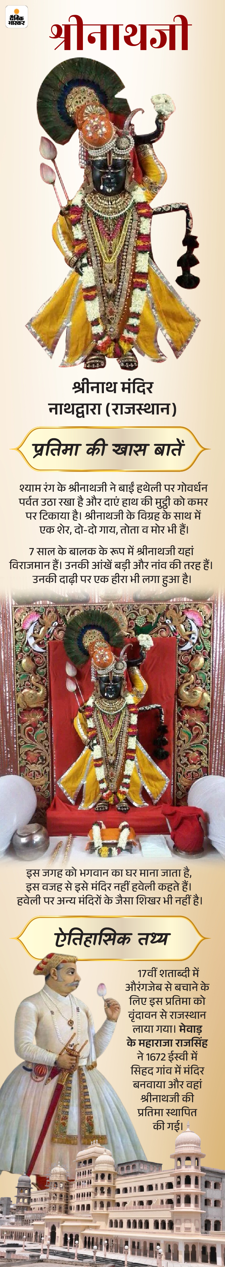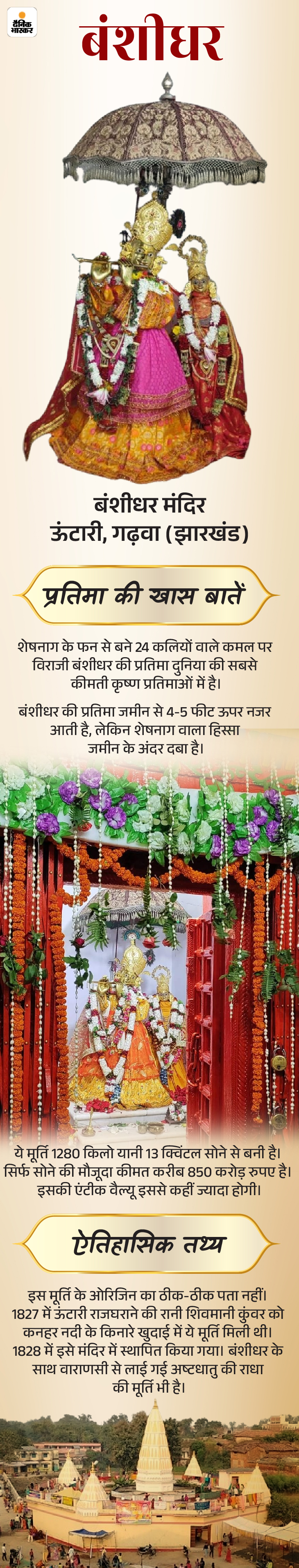 किसी मंदिर में कृष्ण की 1280 किलो सोने से बनी प्रतिमा है, कहीं लकड़ी से बनी बिना हाथ-पैर की अपूर्ण मूर्ति। कहीं पर भगवान बालरूप में हैं, तो कहीं मूंछ वाले कृष्ण भी। जन्माष्टमी पर खास मंडे मेगा स्टोरी में श्रीकृष्ण के मंदिरों में अलग-अलग तरह की 13 भंगिमाओं की रोचक कहानी…