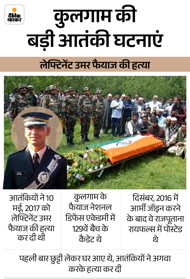 कुलगाम में अब भी बड़ी आतंकी घटनाओं की खबरें आती रहती हैं। इसी साल 5-6 जुलाई को कुलगाम में 6 आतंकियों और सिक्योरिटी फोर्स के बीच एनकाउंटर हुआ था। इसमें दो जवान शहीद हुए और सभी 6 आतंकी मारे गए।