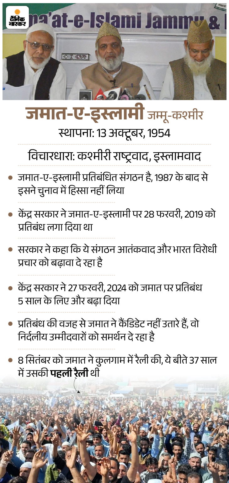 सयार निर्दलीय चुनाव लड़ रहे हैं, लेकिन उन्हें प्रतिबंधित संगठन जमात-ए-इस्लामी का समर्थन हासिल है। कुलगाम हमेशा से जमात का गढ़ रहा है। जमात ने 2014 में PDP कैंडिडेट नाजिर अहमद लावे को सपोर्ट किया था। तब युसुफ तारिगामी हारते-हारते बचे थे। कुलगाम कश्मीर की उन 28 सीटों में शामिल है, जहां BJP ने कैंडिडेट नहीं उतारा है।