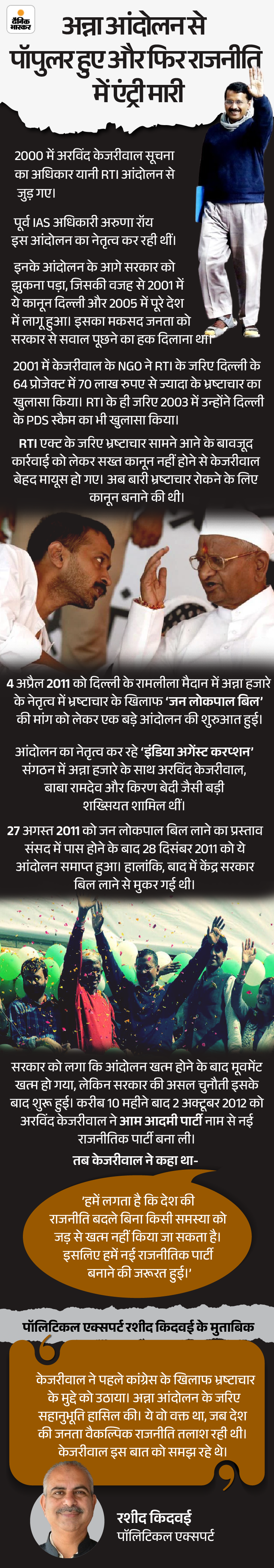 भास्कर एक्सप्लेनर में अरविंद केजरीवाल के बनने और बाजी पलटने वाले उनके बड़े राजनीतिक फैसलों की कहानी…