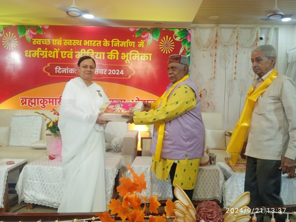 भोपाल शहर के प्रतिष्ठित समाजसेवी जनसंवेदना जनकल्याण समिति के संस्थापक श्री राधेश्याम अग्रवाल का सम्मान ब्रह्माकुमारीज ब्लेसिंग हाउस मे किया गया… धर्मग्रंथो एवं मीडिया की भूमिका के इस सेमिनार में राज्य अधिमान्य पत्रकार -राधेश्याम अग्रवाल जी ने इस अवसर पर अपने विचार व्यक्त किया