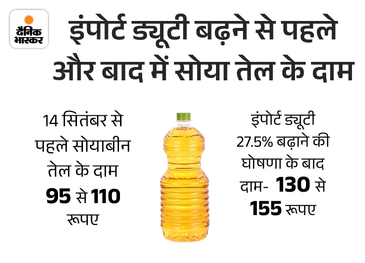 इम्पोर्ट ड्यूटी बढ़ने से एक हफ्ते में सोयाबीन तेल की कीमत 30 से 35 रु. बढ़ गई है। भोपाल की हाउस वाइफ प्रमिला शर्मा कहती हैं कि मेरे परिवार में 5 सदस्य हैं। हम हर महीने 5 से 6 लीटर सोयाबीन तेल का इस्तेमाल करते हैं। दस दिन पहले तक तेल सस्ता था। अब तेल 30 रु. प्रति लीटर महंगा मिला है यानी अब नए सिरे से बजट बनाना पड़ेगा।