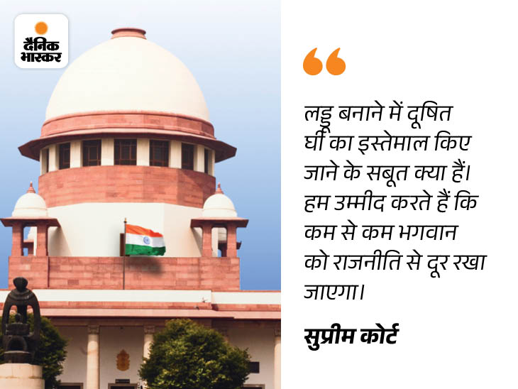 30 सितंबर की सुनवाई में जस्टिस बीआर गवई और केवी विश्वनाथन की बेंच ने कहा था- ‘जब प्रसाद में पशु चर्बी होने की जांच CM चंद्रबाबू नायडू ने SIT को दी, तब उन्हें मीडिया में जाने की क्या जरूरत थी। कम से कम भगवान को तो राजनीति से दूर रखें।’