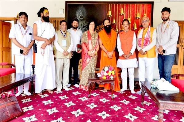 उप मुख्यमंत्री श्री शुक्ल ने हरिद्वार में योगगुरु स्वामी रामदेव और आचार्य बालकृष्ण से की सौजन्य भेंट