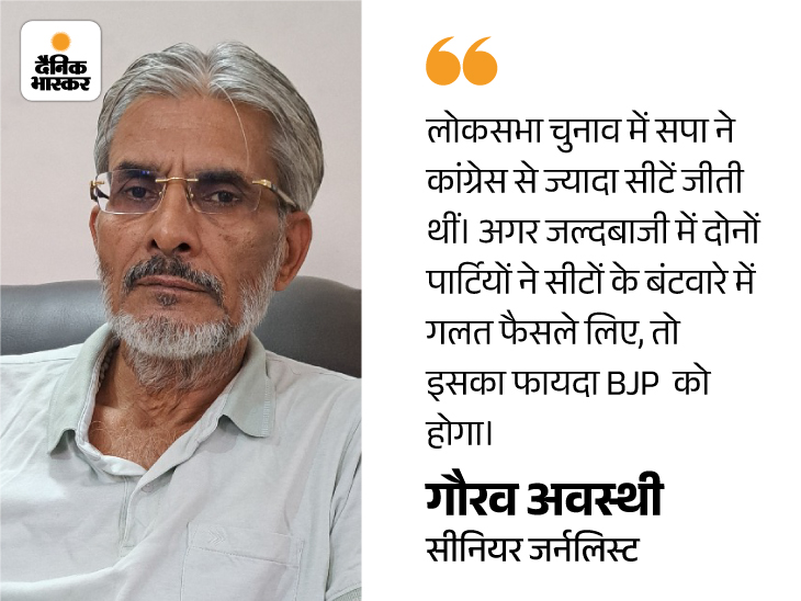 ‘लोकसभा के नतीजों के बाद कांग्रेस UP में पहले से ज्यादा कॉन्फिडेंट है। इसी वजह से उसने सपा के सामने 50% सीटों की डिमांड की। इस डिमांड से पहले उसे सोचना चाहिए था कि लोकसभा में सपा को मिले वोट कांग्रेस से बहुत ज्यादा हैं। UP में फिलहाल सपा उससे ज्यादा स्टेबल दिखती है। ’