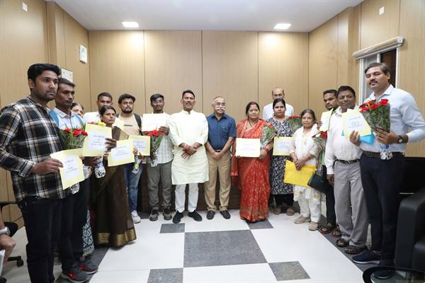 मंत्री श्री सिलावट, जल संसाधन भवन में हितग्राहियों को अनुकंपा नियुक्ति-पत्र वितरित कर रहे थे। उन्होंने अनुकंपा नियुक्ति प्राप्त करने वालों को पुष्प-गुच्छ भेंट कर और मिठाई खिलाकर कार्य के लिए शुभकामनाएं दीं। उन्होंने कहा कि सभी अच्छे से मन लगाकर काम करें। कोई भी दिक्कत या परेशानी हो तो बताएं, सरकार उनके साथ है। परिवार का ध्यान रखें और अपने परिजन को न भूलें, जिनकी वजह से आपको आज अनुकंपा नियुक्ति प्राप्त हुई है।