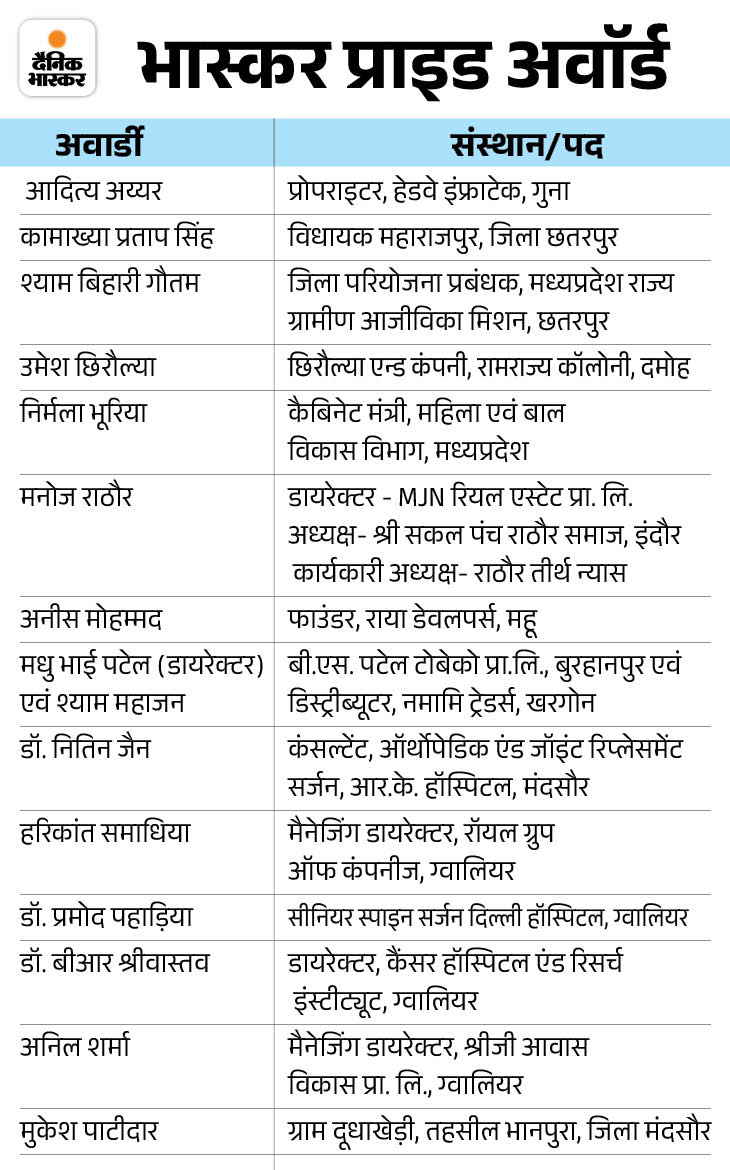 MP की 72 हस्तियों को भास्कर प्राइड अवॉर्ड:CM बोले- दैनिक भास्कर पाठकों के 32 हजार सुझाव मिले, इन्हें लागू करने का हर संभव प्रयास करेंगे
