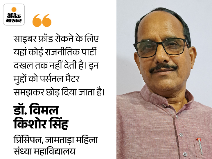 एक्सपर्ट बोले- साइबर क्राइम को पर्सनल मुद्दा बनाकर छोड़ दिया जाता है जामताड़ा महिला संध्या महाविद्यालय के प्रिंसिपल डॉ. विमल किशोर सिंह कहते हैं, ‘जामताड़ा में कड़ा मुकाबला है। अभी ये कयास लगाना मुश्किल है कि चुनाव कौन जीतेगा। आदिवासी का वोट किधर जाता है, सब उसी पर डिपेंड करता है। जिस कैंडिडेट को आदिवासी का वोट ज्यादा मिलेगा, चुनाव उसी के पक्ष में जाएगा।‘