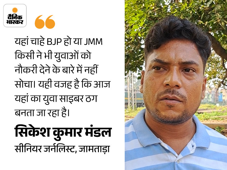 BJP: रोजगार मिलता तो 16-17 साल के बच्चे अपराधी न बनते जामताड़ा में BJP जिलाध्यक्ष सुमित शरण कहते हैं, ‘इस बार जामताड़ा में पड़ने वाली तीनों विधानसभा सीटें जामताड़ा, नाला और सारठ में BJP के पक्ष में माहौल है। जामताड़ा सीट हम लोग जीत रहे हैं। यहां कोई मास्टरमाइंड या बड़ा क्रिमिनल नहीं है। लोग एक-दूसरे को देखकर ही साइबर क्राइम में उतर रहे हैं। इसे खत्म करने के लिए यहां का मनोविज्ञान समझना होगा।‘