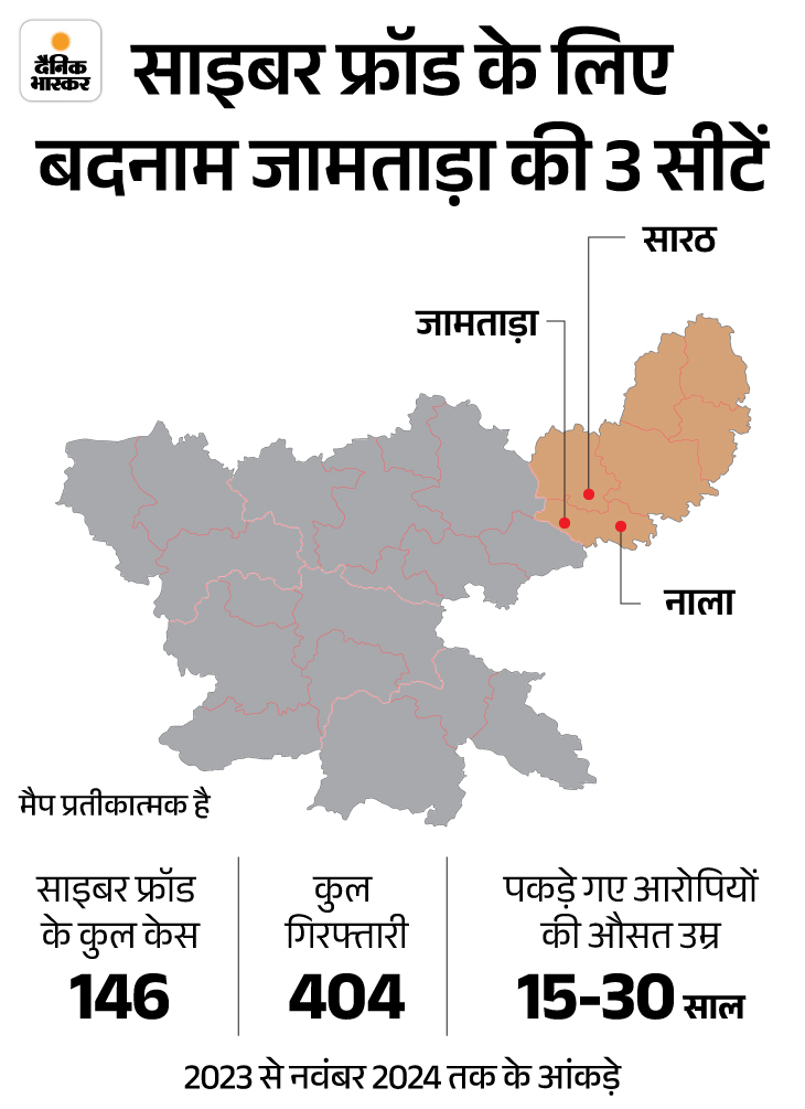 आखिर में बात सारठ विधानसभा सीट की… NETFLIX की वेबसीरीज ‘जामताड़ा’ के बाद हाईलाइट हुआ सारठ सारठ विधानसभा सीट की 7 पंचायतें जामताड़ा में आती हैं। इनमें ज्यादातर गांव साइबर ठगी वाले करमाटांड़ और नारायणपुर ब्लॉक से सटे हुए हैं। यहां 2020 से अब तक 40 बड़े साइबर गिरोह दबोचे जा चुके हैं।