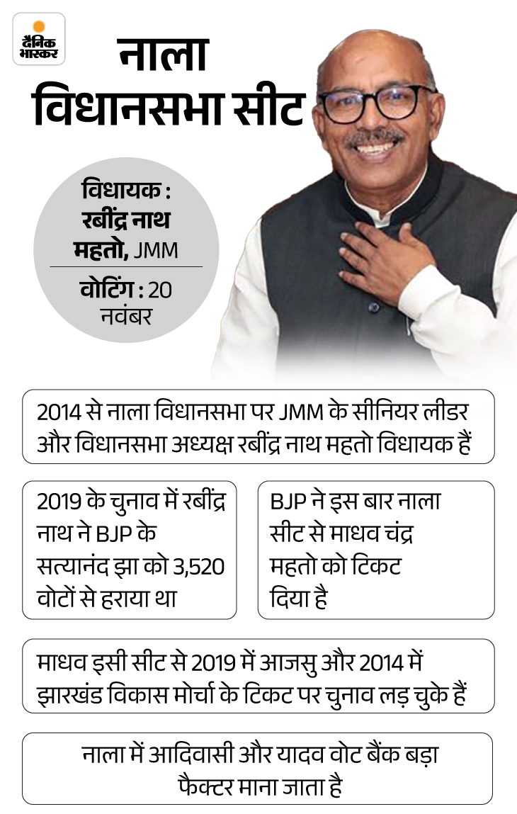 इस सीट पर माधव चंद्र महतो के चुनाव लड़ने से BJP की दावेदारी मजबूत हुई है। इसका बड़ा कारण यहां का यादव वोट बैंक है। नाला में लगभग 60,000 यादव वोटर्स हैं, जो माधव चंद्र महतो को अपना नेता मानते हैं। लिहाजा, उन्हें नाला से लड़ाकर BJP ने बड़ा दांव खेला है।