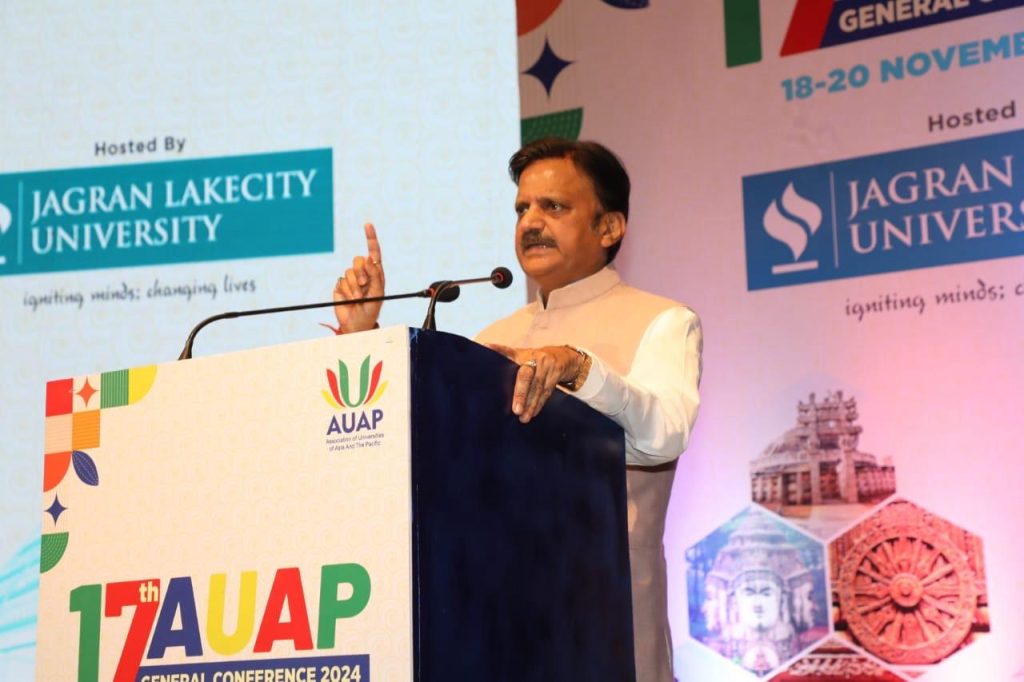 उप मुख्यमंत्री श्री राजेन्द्र शुक्ल ने कहा है कि मानवता के कल्याण के लिए शिक्षा अहम है। उपयुक्त, संस्कारयुक्त शिक्षा और समुचित उपचार की सुविधा, विकास को सार्थक बनाती है। विश्व के कल्याण के लिए सभी को एकजुट होकर सशक्त प्रयास करने होंगे। इस प्रयास में शैक्षणिक संस्थानों की महत्वपूर्ण भूमिका है। प्रधानमंत्री श्री नरेन्द्र मोदी के गौरवशाली नेतृत्व में भारत “वसुधैव कुटुंबकम्” की अवधारणा से कार्य कर रहा है। सभी सुखी हों, सभी निरोगी हों, सभी का कल्याण हो इसी मूलमंत्र से प्रयास ज़ारी हैं। उप मुख्यमंत्री श्री शुक्ल एसोसिएशन ऑफ़ यूनिवर्सिटीज एशिया एंड पैसिफिक (AUAP) के 17 वें सामान्य सभा सम्मेलन को संबोधित कर रहे थे।