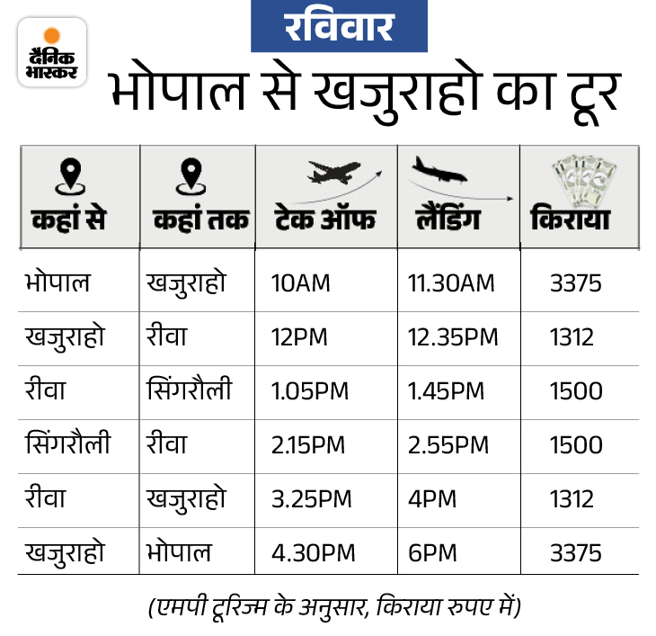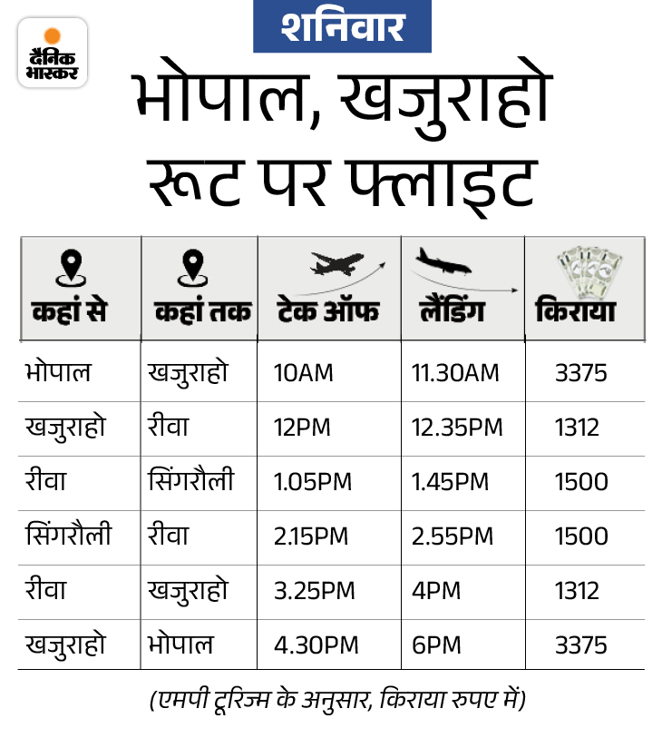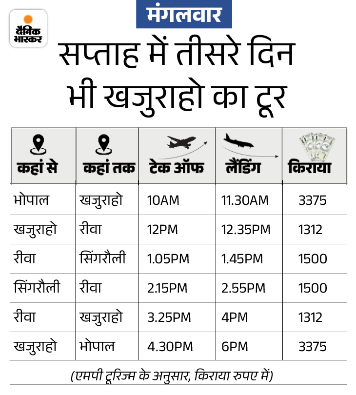 - खजुराहो को सप्ताह में 1 दिन शुक्रवार को भोपाल और जबलपुर से जोड़ा गया। अब 3 दिन फ्लाइट उड़ान भर रही है।