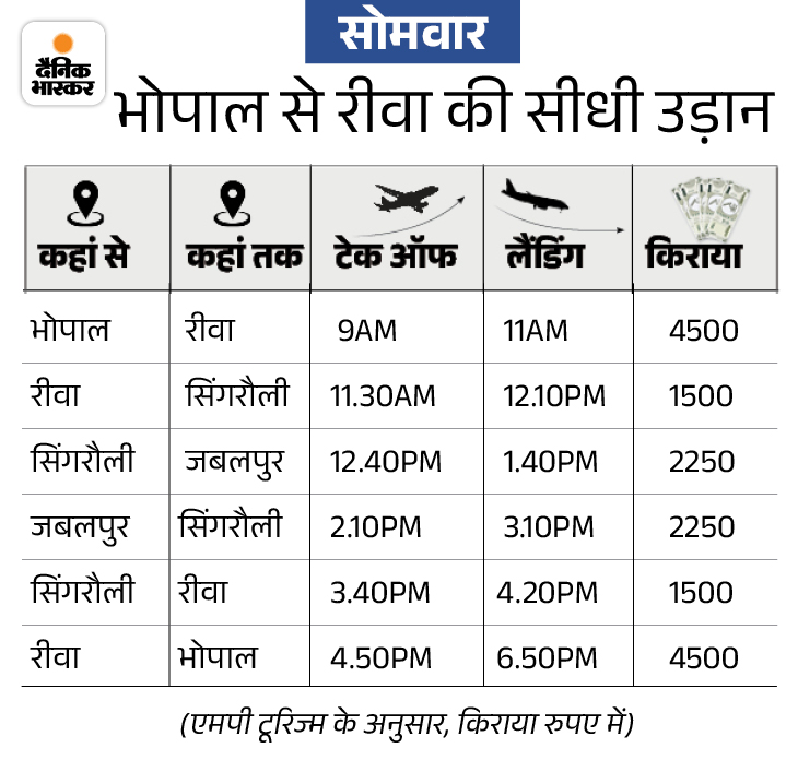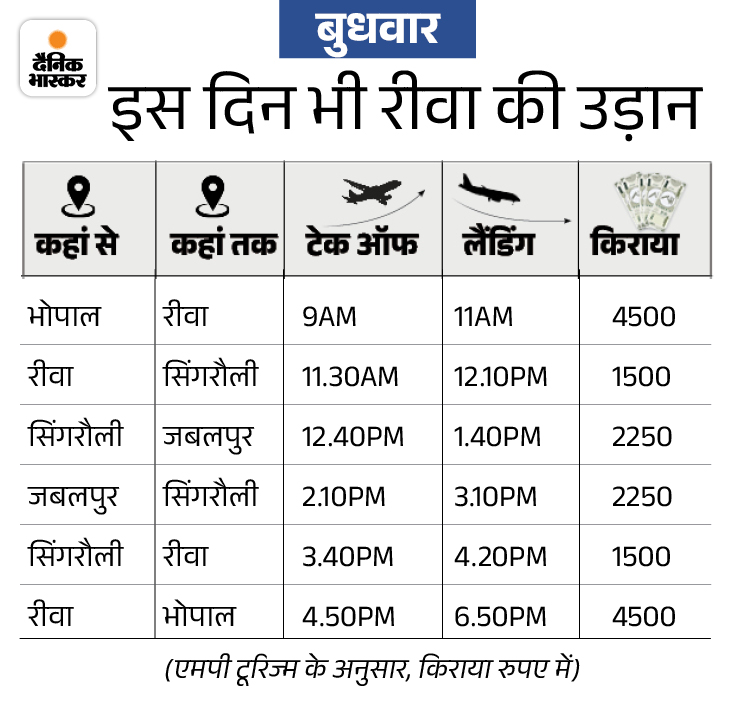 - रीवा को सप्ताह में 2 दिन सोमवार और गुरुवार को इंदौर, जबलपुर और भोपाल से जोड़ा गया।