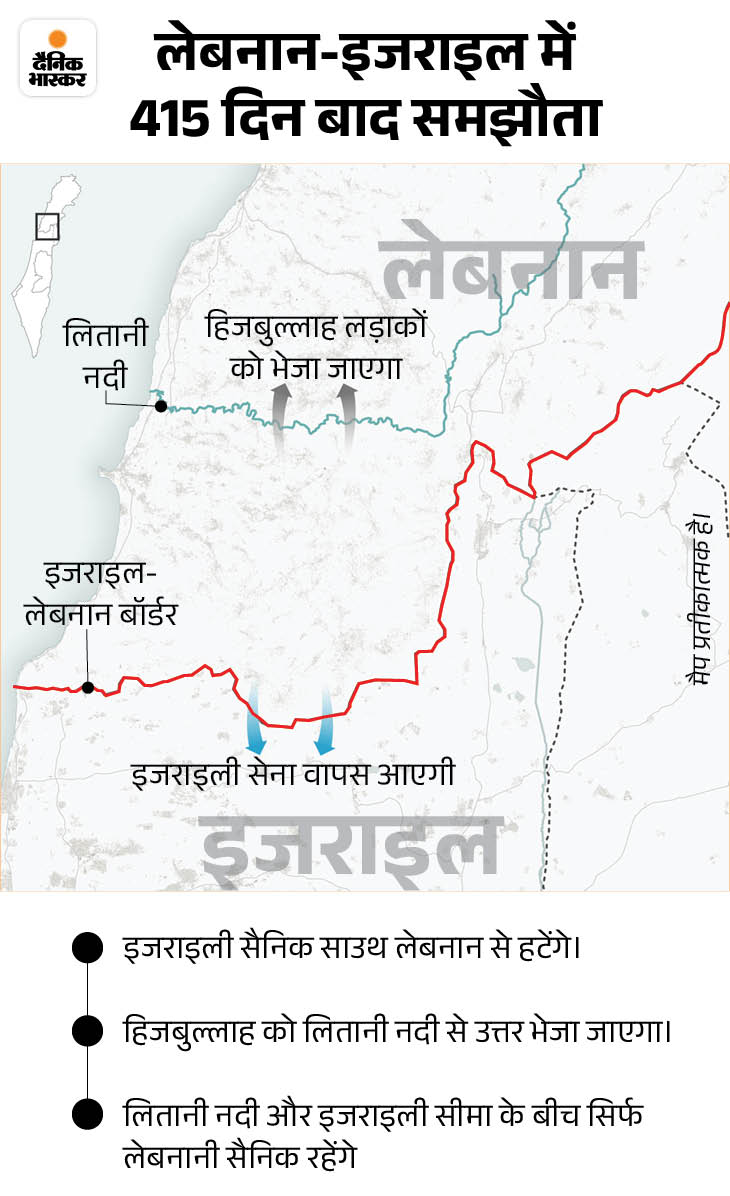 बाइडेन ने कहा कि सीजफायर का मतलब जंग को हमेशा के लिए खत्म करना है। उन्होंने कहा कि इजराइली सेना कब्जे वाले इलाके को लेबनानी सेना को सौंपेगी और वहां से हटेगी, ताकि हिजबुल्लाह वहां कब्जा न जमा ले। 60 दिन के भीतर यह प्रक्रिया पूरी हो जाएगी।