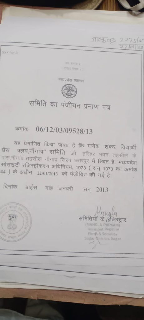 सर्वसाधारण को सूचित किया जाता है कि गणेश शंकर विद्यार्थी प्रेस क्लब पत्रकार संगठन , मध्य प्रदेश के समस्त जिलों में वर्ष 2013 से निष्पक्ष इमानदारी को कर्तव्य निष्ठा से काम करता रहा है यह संगठन नियमानुसार पंजीकृत है ।