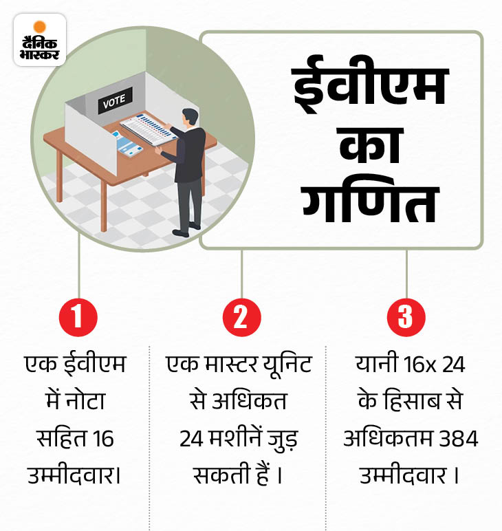 चुनाव आयोग के किसी सर्कुलर में इस बात का उल्लेख नहीं है कि 384 से ज्यादा उम्मीदवार होने पर वोटिंग मतपत्र से होगी, लेकिन इस बात में दम है कि मौजूदा ईवीएम में 384 से ज्यादा उम्मीदवारों का उल्लेख नहीं हो सकता।