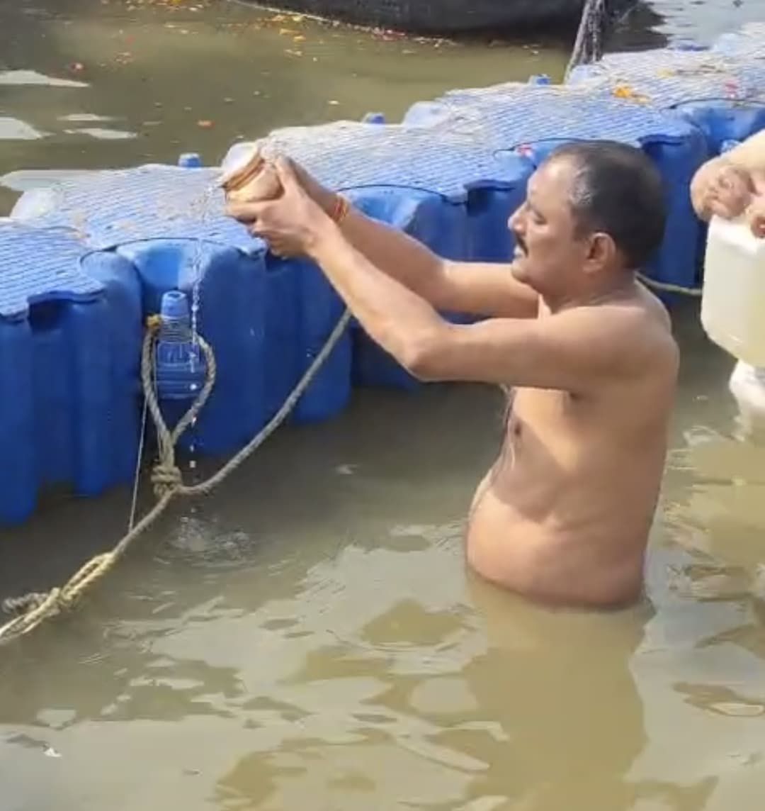 मंत्री श्री राकेश शुक्ला ने रविवार को सपरिवार प्रयागराज के संगम में कुंभ स्नान किया