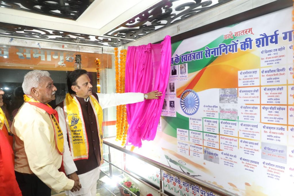 उप मुख्यमंत्री श्री राजेन्द्र शुक्ल ने माँ नर्मदा जयंती के शुभ अवसर पर तुलसी नगर स्थित माँ नर्मदा मंदिर में विधि-विधान से माँ नर्मदा का पूजन-अर्चन किया। इस पावन अवसर पर उन्होंने माँ नर्मदा से प्रदेशवासियों की सुख, समृद्धि एवं कल्याण की कामना की। इस अवसर पर श्री नर्मदा सेवा समाज द्वारा मंदिर परिसर में तैयार किए गए “मध्यप्रदेश के ब्राह्मण समाज के स्वतंत्रता संग्राम सेनानियों की शौर्य गाथा” के भित्ति चित्र का उप मुख्यमंत्री श्री राजेन्द्र शुक्ल ने अनावरण किया। उन्होंने भित्ति चित्र की सराहना करते हुए कहा कि यह चित्र हमारे गौरवशाली इतिहास का प्रतीक है और आने वाली पीढ़ियों के लिए प्रेरणा का स्रोत बनेगा। उन्होंने समाज के उन सेनानियों के योगदान को नमन किया जिन्होंने भारत की स्वतंत्रता के लिए अपना सर्वस्व अर्पित कर दिया। विभिन्न क्षेत्र में उत्कृष्ट कार्य करने वाले समाज के सदस्यों का सम्मान किया। पूर्व मंत्री श्री पीसी शर्मा मंदिर समिति के पदाधिकारी, श्री नर्मदा सेवा समाज के सदस्य, स्थानीय जनप्रतिनिधि और बड़ी संख्या में श्रद्धालु उपस्थित रहे।