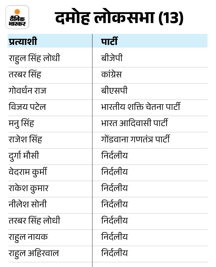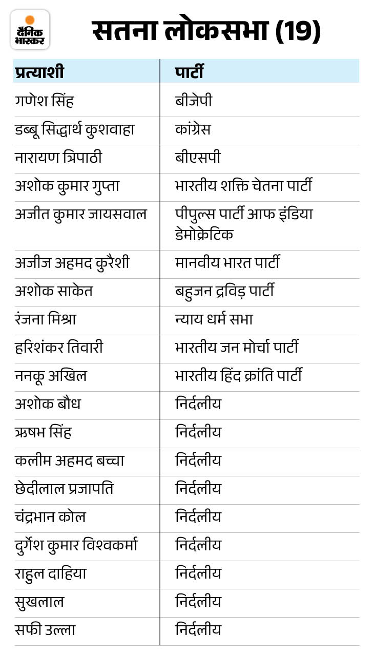 सबसे ज्यादा 19 प्रत्याशी सतना लोकसभा सीट पर हैं। इसके बाद 14-14 कैंडिडेट खजुराहो और रीवा लोकसभा सीट पर हैं। वहीं, दमोह में 13, होशंगाबाद में 12, टीकमगढ़ में 7, बैतूल में 8 कैंडिडेट चुनाव मैदान में हैं।