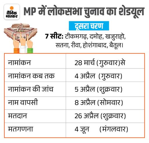 खजुराहो में वीडी शर्मा के सामने 13 प्रत्याशी मैदान में:MP में दूसरे चरण की 7 सीटों पर 87 कैंडिडेट्स; सतना में सबसे ज्यादा 20 उम्मीदवार