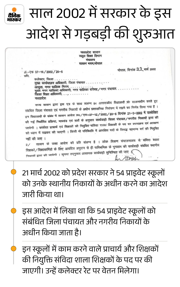 संचालक बोले- सभी स्कूलों की जांच कराएंगे इस मामले में स्कूल शिक्षा विभाग के संचालक दिनेश कुशवाहा का कहना है कि 2002 में इन स्कूलों को जिला पंचायत और स्थानीय निकायों के अधीन किया गया था। जिसे बाद में बदल दिया था। ये सभी स्कूल 2014 में कोर्ट पहुंच गए थे। इन्हें फिर से निकायों के अधीन करने की प्रक्रिया शुरू की गई थी।