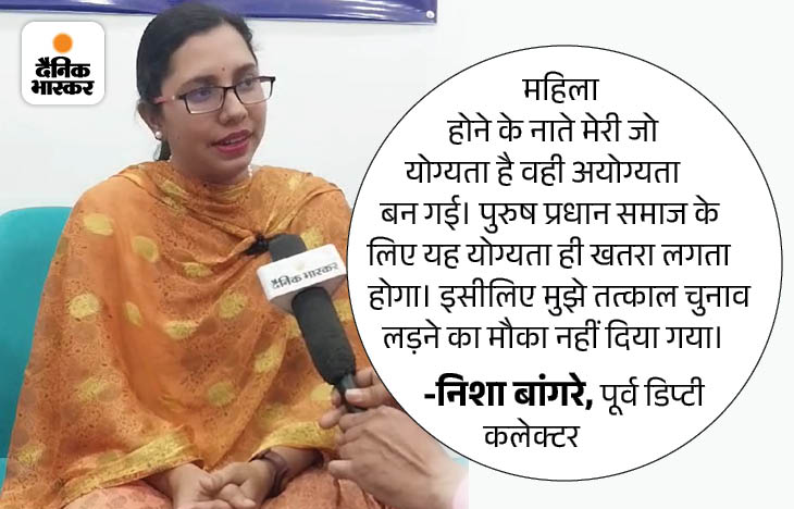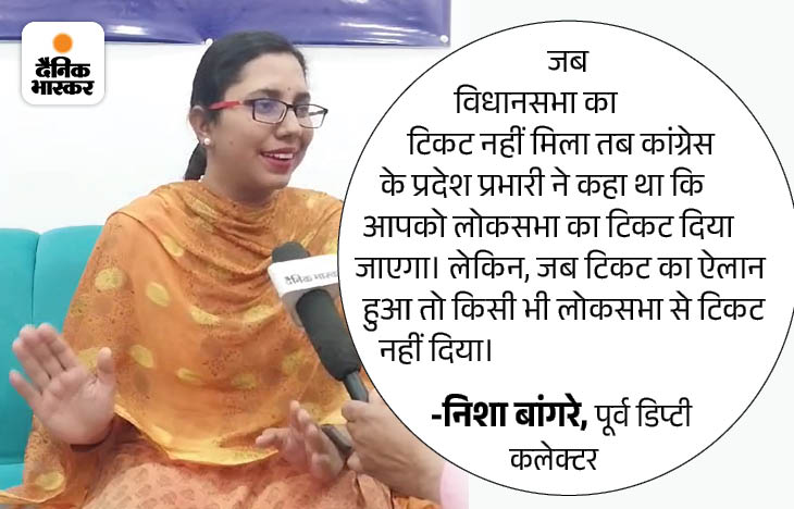 दैनिक भास्कर से बात करते हुए निशा बांगरे ने कहा, ‘कांग्रेस ने मेरी नौकरी छुड़वाई, टिकट भी नहीं दिया। ये मेरे लिए एक धक्का है। मेरे परिवार को लगता है कि मेरे साथ धोखा हुआ है। मुझे भी लगता है कि कहीं न कहीं गलत तो हुआ है। अन्याय हुआ है। अगर समय पर इस्तीफा स्वीकार नहीं करना अन्याय है, तो यह भी एक तरह का अन्याय है। उन्होंने मेरा कॅरियर खराब किया है।’