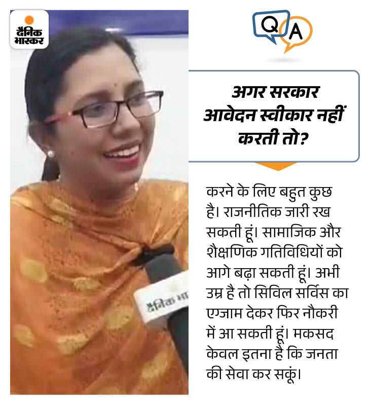 जवाब: परिवार ने कहा कि चुनाव के नतीजे आ चुके हैं, अब आपको नौकरी में वापस जाना चाहिए। ससुराल पक्ष-मायके पक्ष दोनों ने मुझ पर इसके लिए दबाव बनाया। उसके बाद मैंने 18 जनवरी को ही सेवा में वापस लौटने के लिए आवेदन किया।