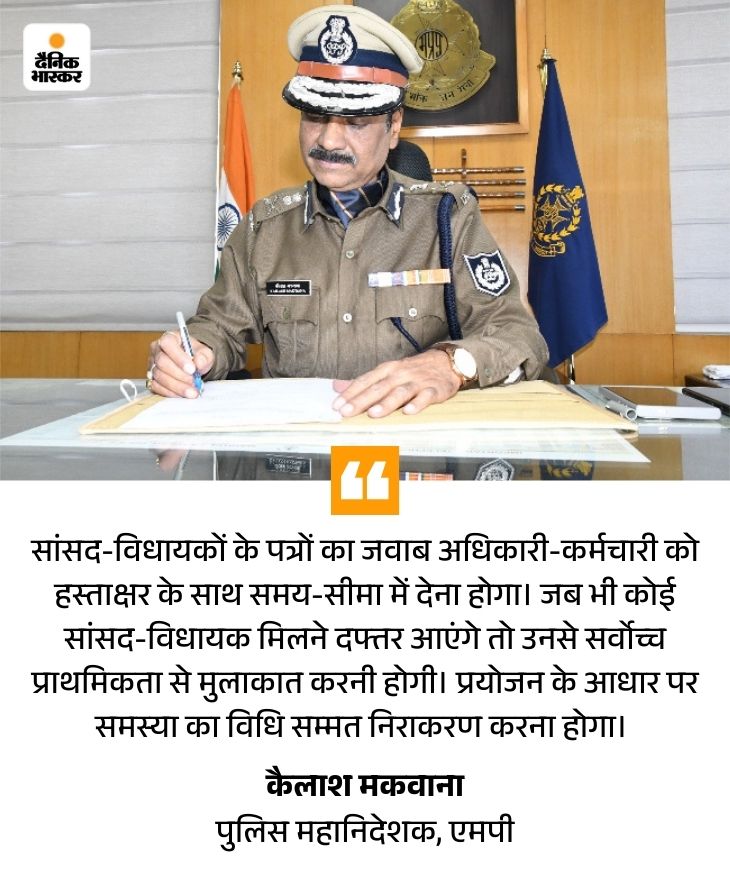 ध्यान से सुनेंगे बात, शिष्टता से देंगे जवाब डीजीपी ने यह भी कहा है कि सांसदों, विधायकों द्वारा जब भी पुलिस अधिकारियों और कर्मचारियों से मोबाइल या फोन पर जन समस्या को लेकर संपर्क किया जाता है तो अधिकारी-कर्मचारी की जिम्मेदारी होगी कि संवाद के दौरान ध्यान से उनकी बात सुनेंगे और शिष्टता के साथ जवाब देंगे।