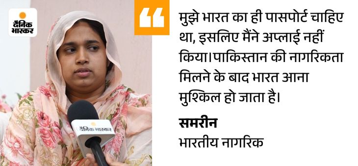 2017 में शादी, पाकिस्तान में विजिटर वीजा पर रहती है समरीन दैनिक भास्कर ने जब समरीन से संपर्क किया तो उन्होंने पहले बात करने से इनकार कर दिया था। बाद में वह बात करने के लिए जैसे-तैसे राजी हुईं। समरीन ने बताया कि 2017 में उनकी शादी पाकिस्तान के रहने वाले सद्दाम से हुई थी। पिछले आठ साल से वह विजिटर वीजा पर पाकिस्तान में ही रह रही है। उनके दो बच्चे हैं। बड़ा बेटा साजिल 6 साल का और छोटी बेटी जुनैरा डेढ़ साल की है।