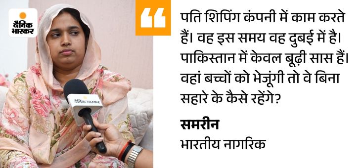 इधर, समरीन इस बात से चिंतित है कि बच्चे पाकिस्तान में अकेले कैसे रह पाएंगे? बच्चों के पिता दुबई में हैं और पाकिस्तान में केवल बूढ़ी सास है। भारतीय नागरिक होने से उसे भी पाकिस्तान का वीजा नहीं मिलेगा। इसी असमंजस के बीच समरीन को भारत सरकार के जवाब का इंतजार है।