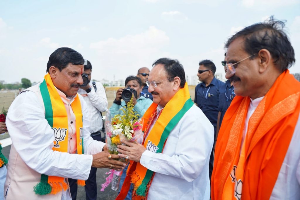 राष्ट्रीय अध्यक्ष श्री जगत प्रकाश नड्डा जी के मंगलवार को मध्यप्रदेश प्रवास के दौरान रीवा पहुंचने पर मुख्यमंत्री डॉ. मोहन यादव ने स्वागत कर अगवानी की