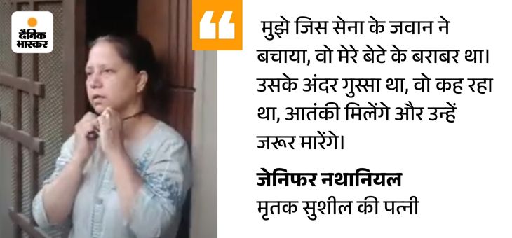 जेनिफर पहलगाम हमले में जान गंवाने वाले सुशील नथानियल की पत्नी हैं। सुशील आलीराजपुर स्थित एलआईसी की सैटेलाइट शाखा में पदस्थ थे। वे 21 वर्षीय बेटे ऑस्टिन गोल्डी, 30 वर्षीय बेटी आकांक्षा और पत्नी जेनिफर के साथ 18 अप्रैल को कश्मीर गए थे। 22 अप्रैल की दोपहर करीब 2.45 बजे पहलगाम की बैसारन घाटी में आतंकियों ने पर्यटकों पर फायरिंग की, जिसमें 27 लोगों की मौत हो गई। इनमें सुशील भी शामिल थे। बेटी आकांक्षा घायल हो गई थीं।