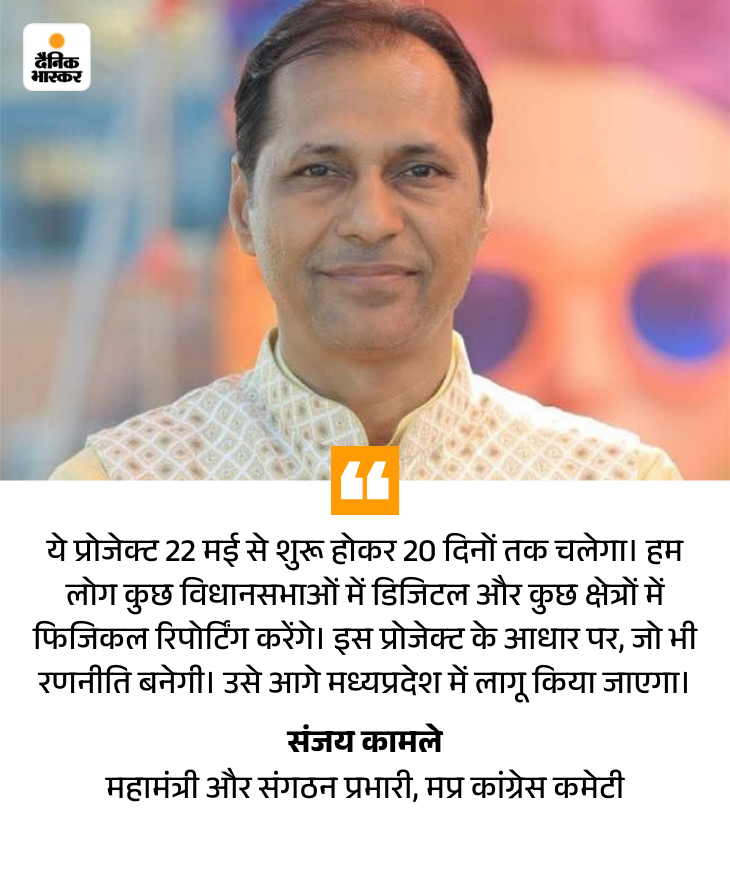 दो विधानसभाओं की रिपोर्ट डिजिटल, 3 की फिजिकल होगी दर्ज विदिशा जिले की पांचों विधानसभा सीटों पर 2023 के विधानसभा चुनाव में बीजेपी उम्मीदवारों ने जीत दर्ज की थी। कांग्रेस के पायलट प्रोजेक्ट में दो विधानसभाओं की रिपोर्ट डिजिटल तैयार कराई जाएगी और तीन सीटों की रिपोर्ट फिजिकल यानी पेपर पर दर्ज होगी। इस प्रोजेक्ट के दौरान यह देखा जाएगा कि जिन कार्यकर्ताओं को काम दिया गया है, वे डिजिटल रिपोर्टिंग सही कर रहे हैं या कागज पर सही जानकारी दर्ज हो रही है।