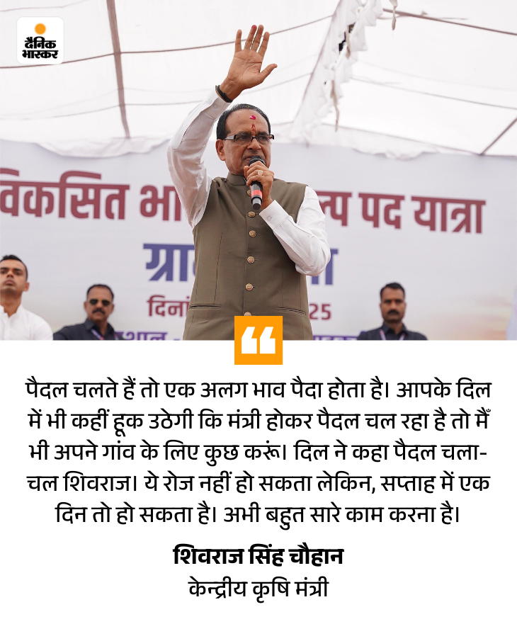 केंद्रीय कृषि मंत्री शिवराज सिंह चौहान ने अपने संसदीय क्षेत्र विदिशा के लाडकुई गांव से रविवार को पदयात्रा की शुरुआत की। इस पदयात्रा में शिवराज की पत्नी साधना सिंह और बेटे कार्तिकेय के साथ ऑक्सफोर्ड यूनिवर्सिटी पासआउट बहू अमानत भी गांवों में पदयात्रा कर रही हैं। दैनिक भास्कर ने शिवराज की इस पदयात्रा में पहुंचकर इसका उद्देश्य जाना।