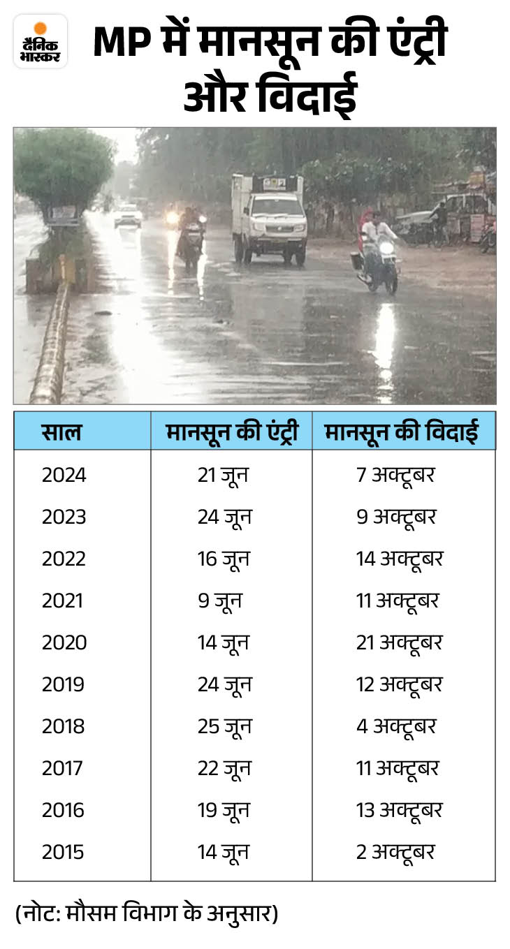 बता दें कि प्रदेश में मानसून के आमद की सामान्य तारीख 15 जून है। हालांकि, पिछले कुछ सालों से यह 18 से 22 जून के बीच ही पहुंच रहा है। पिछले साल यानी 2024 में मानसून की 21 जून को एंट्री हुई थी। यह 6 दिन देरी से प्रदेश में पहुंचा था। इस बार जून के शुरुआत में ही मानसून के एंटर होने की उम्मीद है।
