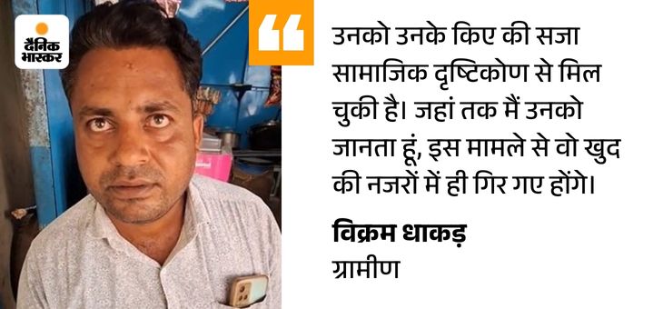 समाज से अलग करने पर विचार कर रहे धाकड़ समाज से ही आने वाले गांव के पूर्व प्रिंसिपल सोहन लाल धनोरा ने कहा- समाज के ग्रुपों में वीडियो वायरल हुआ, तभी हमने देखा। सामाजिक और राजनैतिक दोनों दृष्टि से ये शर्मनाक वीडियो है। हम मनोहरलाल को समाज से अलग करने पर विचार कर रहे हैं।