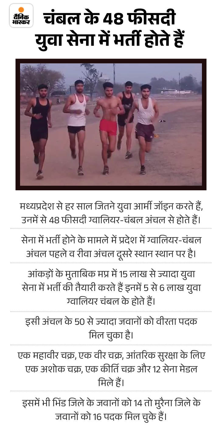 पीएम के इस बयान के बाद दैनिक भास्कर ने ये जानने की कोशिश की कि अग्निपथ योजना के लॉन्च होने के 2 साल में युवाओं का रुझान सेना में भर्ती को लेकर बढ़ा है या फिर कम हुआ है। क्या कहते हैं युवा और उन्हें ट्रेनिंग देने वाले ट्रेनर, इस क्षेत्र की चार सीटें ग्वालियर, गुना, मुरैना, भिंड में युवा वोटर्स कितने निर्णायक है। पढ़िए रिपोर्ट..