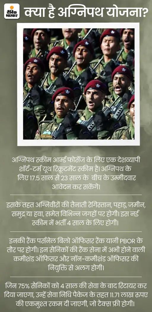 उन्होंने कहा- सेना को युवाओं की जरूरत है। मुझे लगता है कि युवा उत्साह से भरा होता है। वे टेक-लवर होते हैं। हमने इस बात का उचित ध्यान रखा है कि उनका भविष्य भी सुरक्षित रहे। जरूरत पड़ी तो हम बदलाव भी करेंगे।