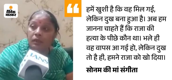 उन्होंने कहा- सोनम मिल गई। खुशी भी है लेकिन बच्चा (राजा) चला गया, इस बात का दुख है। जितनी खुशी है, उससे कहीं ज्यादा दुख है।