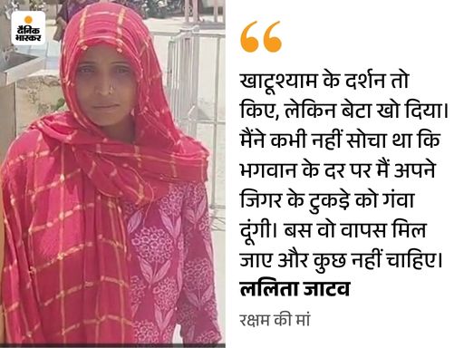 राजस्थान के खाटूश्याम में रक्षम के अपहरण के बाद से पूरे परिवार का रो-रोकर बुरा हाल है। दैनिक भास्कर ने इकलौते बेटे को मंदिर के एंट्री गेट पर आखिरी बार देखने वाली मां ललिता से फोन पर बात कर पूरे मामले को समझा।