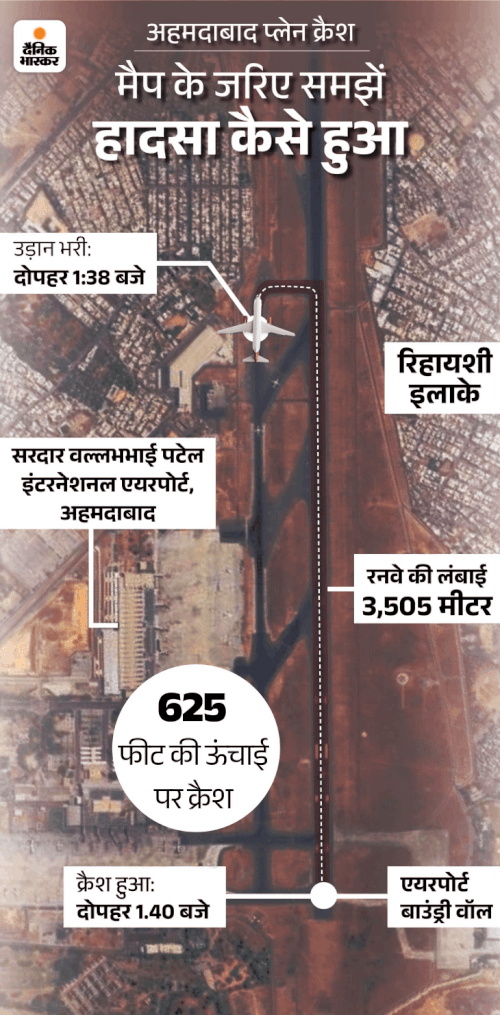 एयर इंडिया की फ्लाइट नंबर AI-171 ने दोपहर 1:38 बजे उड़ान भरी थी। दोपहर 1:40 बजे यह क्रैश हो गई।