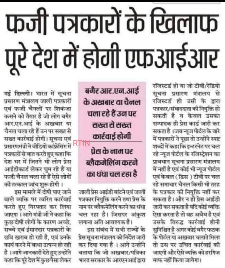 राज्य फर्जी पत्रकारों के खिलाफ पूरे देश में होगी FIR admin June 17, 2025 0 Spread the love Post navigation Previous: 17 जून 1674 संकल्पवान माता जीजाबाई का निधनNext: देर रात फिर कई थानों के थाना प्रभारी हुआ इधर से उधर More Stories राज्य साधना सप्ताह में मप्र को अधिकतम पाठयक्रम पूरा करने राष्ट्रीय स्तर पर तीसरा स्थान admin April 18, 2026 0 राज्य मुख्यमंत्री डॉ. यादव ने गुरू अंगद देव जी के प्रकाश पर्व की शुभकामनाएं दीं admin April 18, 2026 0 राज्य 10वीं-12वीं बोर्ड के विद्यार्थियों को द्वितीय अवसर परीक्षा का मिलेगा मौका : मुख्यमंत्री डॉ. यादव admin April 18, 2026 0 Leave a Reply Cancel replyYour email address will not be published. Required fields are marked *Comment * Name * Email * Website Save my name, email, and website in this browser for the next time I comment. Δ