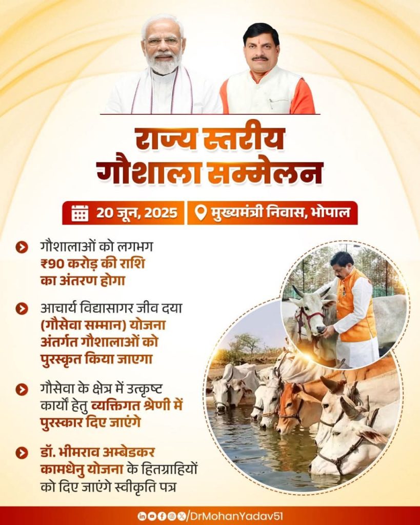 राज्य गौसेवा से समृद्धि के संकल्प के साथ कल, 20 जून को भोपाल निवास में आयोजित “राज्य स्तरीय गौशाला सम्मेलन” में गोवंश के संरक्षण व संवर्धन को मिलेगी नई दिशा। admin June 20, 2025 0 Spread the love Post navigation Previous: मानस भवन भोपाल में लगातार 12 वर्ष से आयोजित होने वाली काव्यांजलि समारोहNext: पूर्व CM शिवराज जी ने घुटने पर बैठ-बैठ कर लाड़ली बहनों को हर महीने ₹3000 देने की घोषणा करके, वोट की भीख मांगी थी! More Stories राज्य एमपी में मकान बनाना 35% तक महंगा admin April 16, 2026 0 राज्य 90% +अंक लाने वाले admin April 16, 2026 0 राज्य MP के हजारों कर्मचारियों का DA 5% बढ़ा admin April 16, 2026 0 Leave a Reply Cancel replyYour email address will not be published. Required fields are marked *Comment * Name * Email * Website Save my name, email, and website in this browser for the next time I comment. Δ