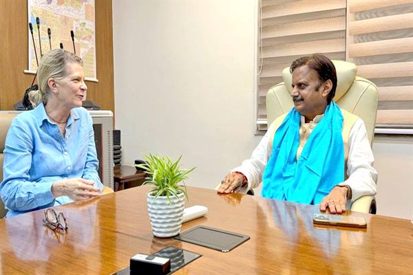 उप मुख्यमंत्री श्री राजेन्द्र शुक्ल से मंत्रालय में यूनिसेफ इंडिया की प्रतिनिधि सुश्री सिंथिया मैककैफ्री ने सौजन्य भेंट की। उप मुख्यमंत्री श्री शुक्ल ने कहा कि यूनिसेफ इंडिया की साझेदारी ने प्रदेश में