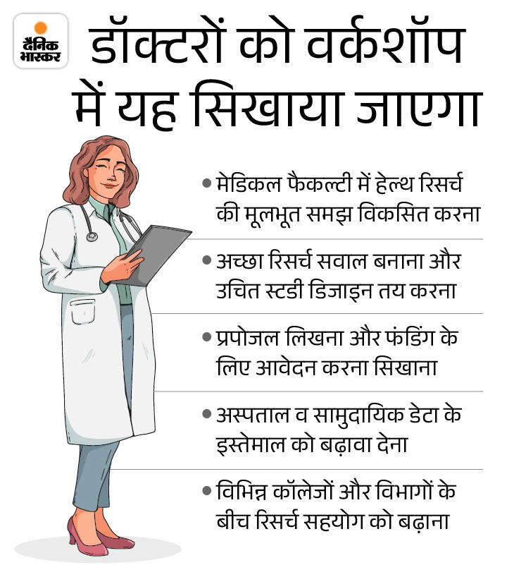 क्या एक डॉक्टर सिर्फ इलाज करता है, ऐसा नहीं है। वह बीमारियों के पीछे की वजह भी खोज सकता है, नई दवाएं विकसित कर सकता है और इलाज के बेहतर तरीके भी खोज सकता है। इसी सोच के साथ गांधी मेडिकल कॉलेज (GMC) में तीन दिवसीय रिसर्च मेथडोलॉजी वर्कशॉप का आयोजन 25 जून से किया जा रहा है। इसका उद्देश्य डॉक्टरों और फैकल्टी को अच्छा शोधकर्ता बनाना, ताकि वे सिर्फ मरीजों का इलाज न करें, बल्कि भारत की स्वास्थ्य नीति और भविष्य को भी आकार दें। यह वर्कशॉप गांधी मेडिकल कॉलेज की मल्टीडिस्पिलनरी रिसर्च यूनिट (MRU) द्वारा आयोजित की जा रही है।