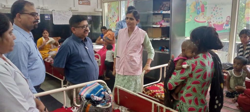 सिविल अस्पताल बैरागढ़ के निरीक्षण के दौरान अस्पताल में चल रहे निर्माण कार्यों की समीक्षा की गई। अस्पताल में संचालित पोषण पुनर्वास केंद्र में भर्ती बच्चों की माताओं से बच्चों के पोषण में सुधार का फीडबैक लिया गया । डॉ शर्मा ने अस्पताल अधीक्षक को निर्देश दिए कि आगामी दस्तक अभियान के दौरान संभावित कुपोषित बच्चों को भर्ती किए जाने की सभी आवश्यक व्यवस्थाएं अस्पताल में सुनिश्चित हो ।