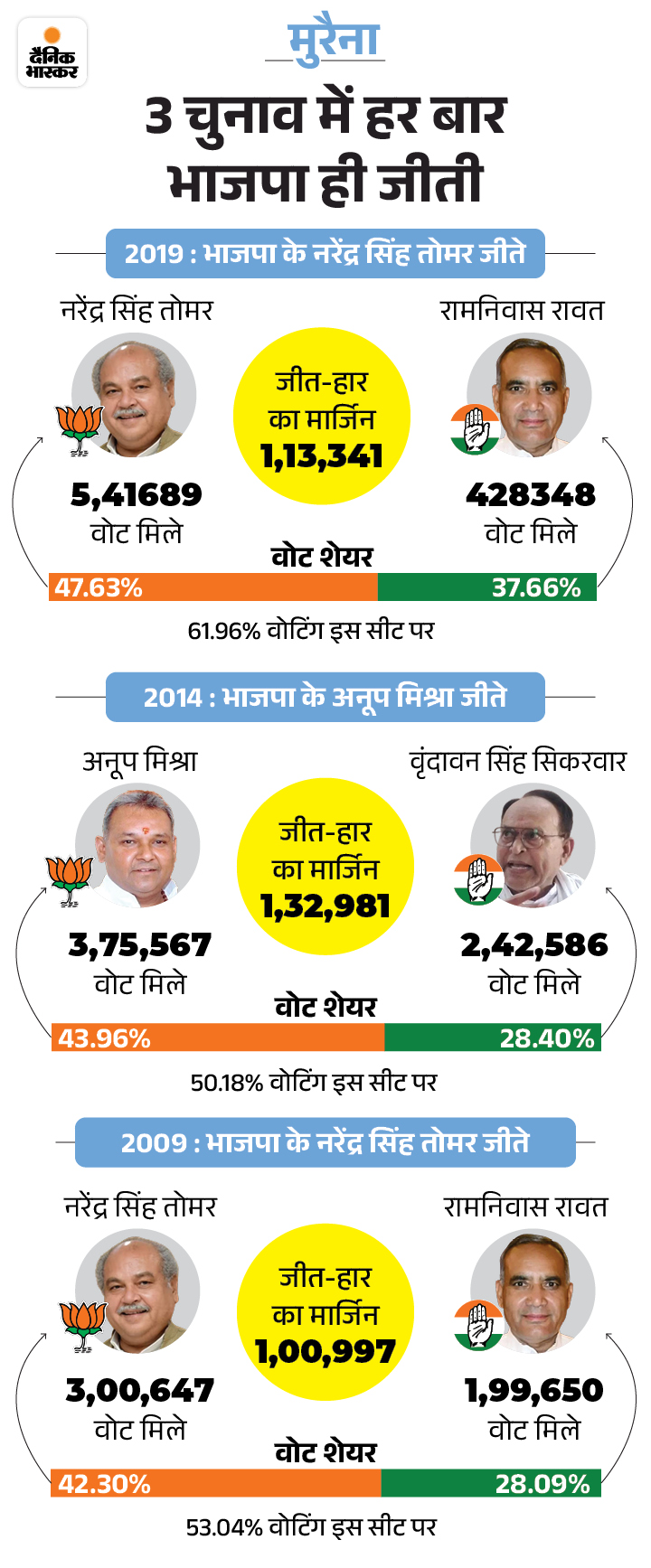 मुरैना सीट पर पिछले 3 चुनाव का रिजल्ट देखिए –